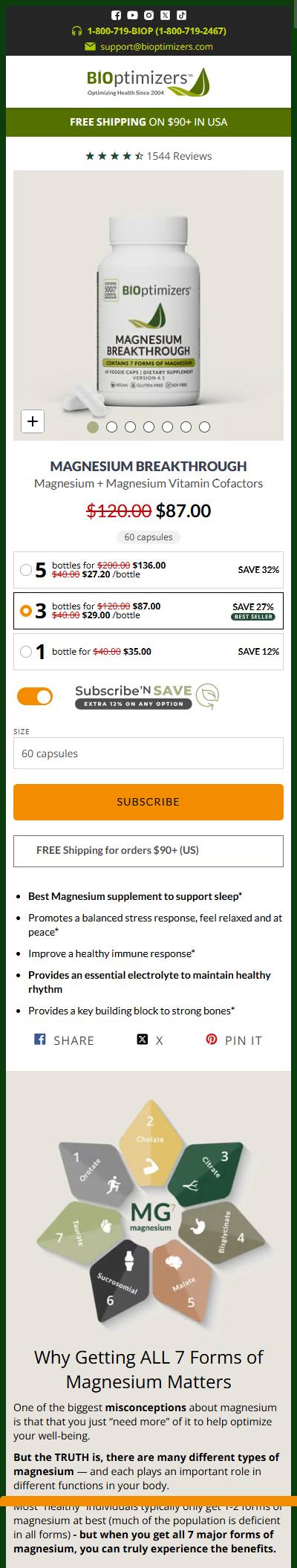 Magnesium Breakthrough offers unbeatable conditions: 32% discount, $136 savings, free shipping on orders over $90, and a 365-day guarantee. Purchases are made securely on the official website or store, directly from the manufacturer. This combination of benefits makes it one of the most reliable and cost-effective options available today for buyers in the United States.